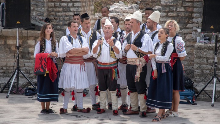 Spectaculos este amfiteatrul in aer liber, unde la momentul vizitei se desfasura un moment artistic de cantece si dansuri populare traditionale albaneze.
