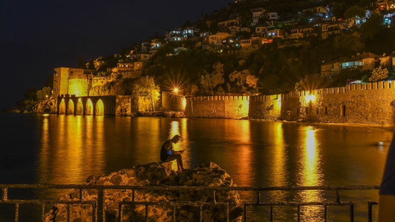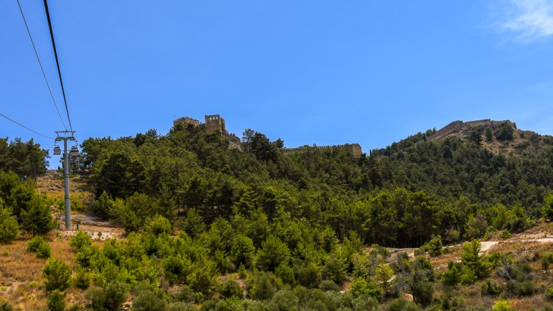 -Alanya Castle, a fost construit in sec al XII-lea pe ramasitele epocii bizantine anterioare și a fortificațiilor din epoca romana . Dupa ce zona a fost pacificata sub Imperiul Otoman , castelul a încetat să mai fie pur defensiv și numeroase vile au fost construite în interiorul zidurilor în timpul secolului al XIX-lea. Astazi cladirea este un muzeu in aer liber . Accesul la castelul dinspre mare este platit, dar o mare parte din zona din interiorul zidului, inclusiv castelul de pe uscat este deschisa publicului larg.