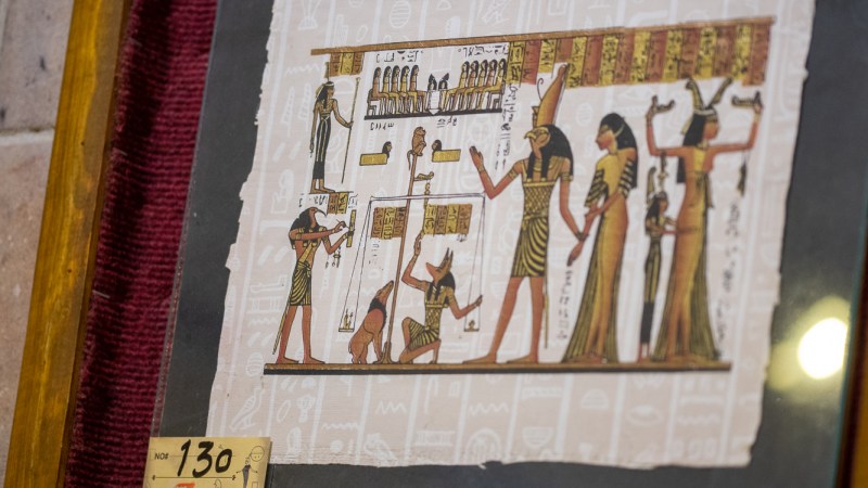 Am vizitat si o fabrica de papirusuri, ca cel de mai jos, unde puteti afla cum se realizeaza celebra hirtie, din papirus, planta sfanta pentru egipteni: