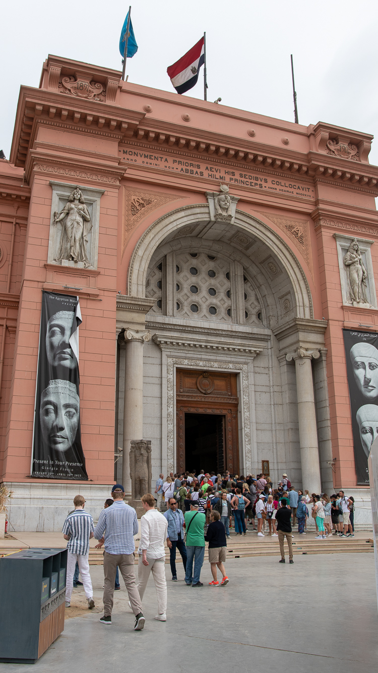 Prima vizita a fost la Muzeul Egiptean, dupa ce am trecut de controalele de securitate. Primim casti pentru o buna comunicare cu ghida. Aceasta vorbea aproape la perfectie romaneste, a invatat doar de pe youtube. Intrarea in muzeu o puteti vedea mai jos: