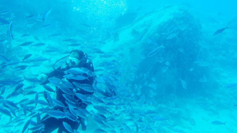 Suntem transbordati pe submarin, fiecare avand un loc specificat dinainte. Locurile sunt de o parte si de alta a submarinului. Un scafandru se afla intai pe o parte a submarinului si hraneste pestii si apoi vine si pe partea cealalta. Apoi tot el face filmari subacvatice si poze turistilor din submarin. Ai astfel ocazia de a vedea, un pic mai intens, ecosistemul din Marea Rosie celebru pentru diversitatea de vietuitoare si de culori.