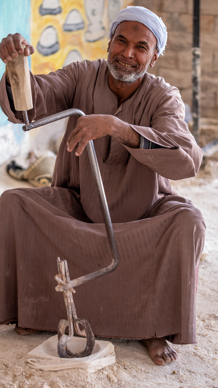 Atelierul de alabastru, un magazin-atelier cu vânzare de obiecte decorative prelucrate în piatră, sub diferite forme: statuete, obeliscuri, piramide, vaze, corpuri de iluminat, precum şi bijuterii sub formă de coliere, cercei sau inele. Ei pretind ca sunt prelucrate in mod traditional dar personal nu cred ca este cazul. Mai jos un mester cu unealta traditionala de slefuit, facand figuratie pentru turisti: